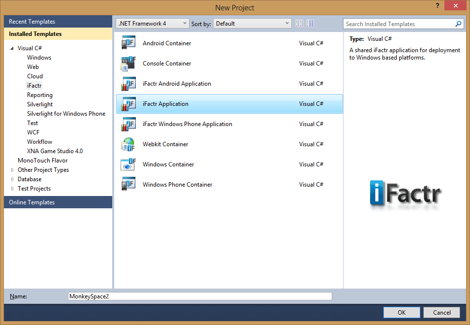 iFactr Visual Studio 2010 templates