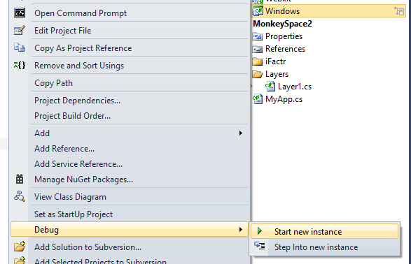 of course, we added a reference to the MonkeySpace2 project, as well