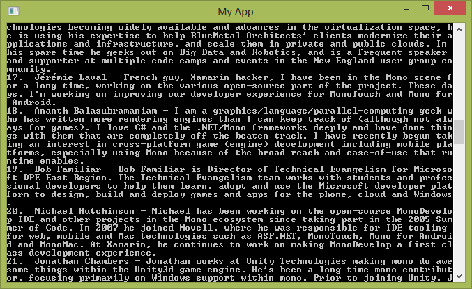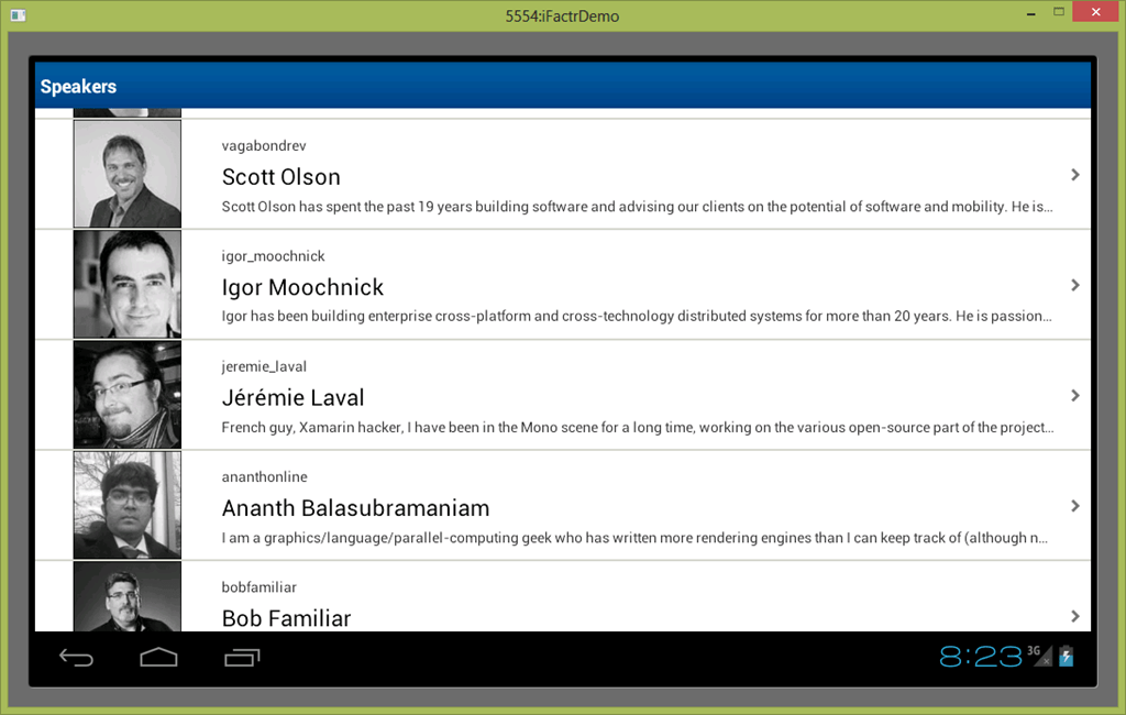 Speakers = SerializerFactory.Create<Speaker> (SerializationFormat.JSON).DeserializeList (Network.Get ("http://monkeyspace.org/data/speakers.json"));