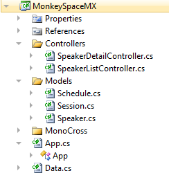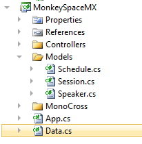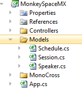 A good place to start would be to get our models in place, since these serve as the building blocks for the Navigation Map and Controllers that exist in the common area of a Monocross project. So let’s do that: