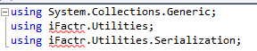 Sweet. Took care of the Serializing problems, but we’ve still got an issue w/ Network. This is because iFactr created Network in a platform-agnostic manner to perform platform-specific network connectivity so unfortunately we don’t get it in Monocross. No worry, though. It’s easy enough to redo using basic .Net constructs: