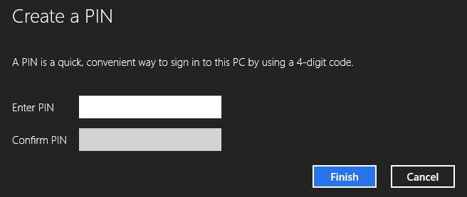 Click ‘Create a PIN’ and you’ll be prompted for your current Windows account password. Then you’ll see this screen: