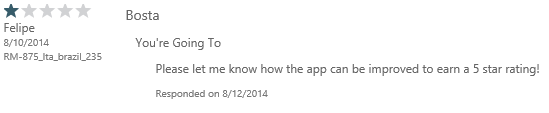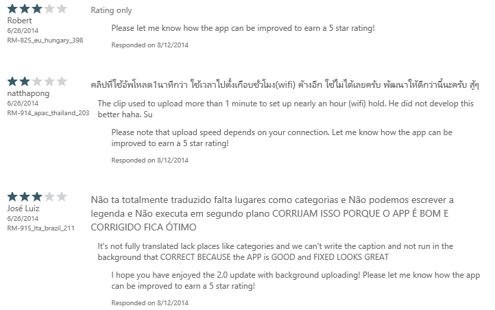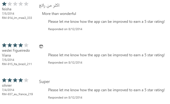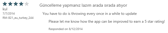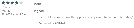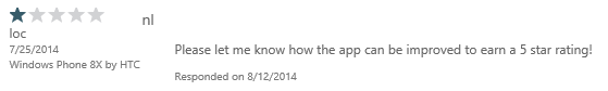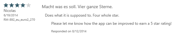 Come across a review of your app where users haven’t use the US store and aren’t running WP 8.1, and you see the familiar:
