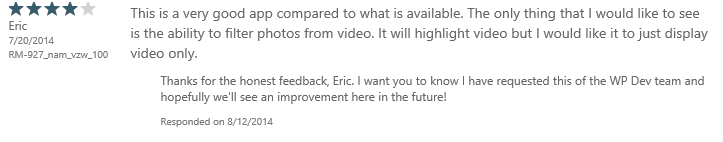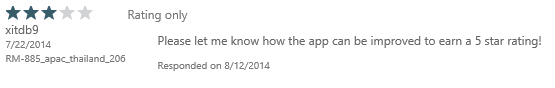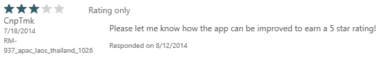 All over the news lately is the new release of the ability for Windows Phone developers to respond to user reviews via the dev center, something of which any developer can immediately see the value.