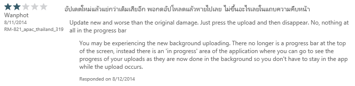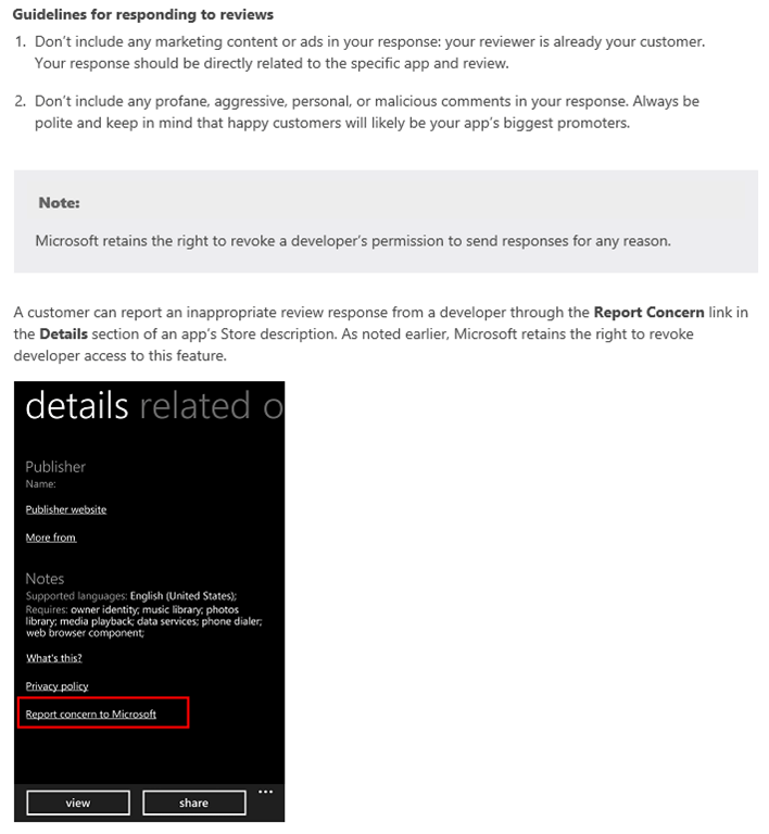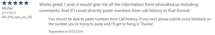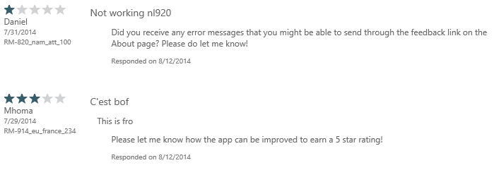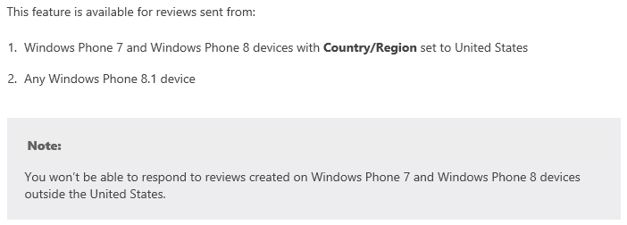 The bad part about this is you can only respond to reviews from people who are using the United States Windows Phone store while shopping, or users running WP 8.1: